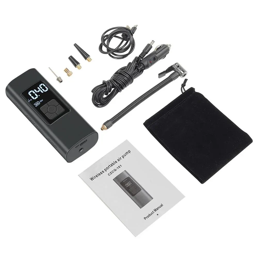 Materials: ABS + Metal Cylinder: 22-Cylinder Air Flow Capacity: 20L/min Max Pressure: 150PSI Battery: 6000mAh (2000mAh*3) Units of Pressure: PSI, KPA, BAR Suitable for: Cars, Motorcycles, Bicycles, Electric Bikes, Balls, etc. |