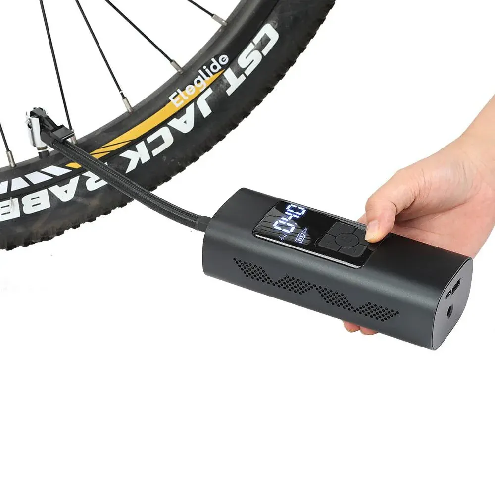 Boasting an impressive 60W output and 22-cylinder design, the Eleglide air pump delivers a maximum pressure of 150PSI and a maximum airflow of 20L/min, enabling fast and effortless tire pumping. With a 6000mAh battery capacity, the portable air pump can be used to charge your phone and other devices.