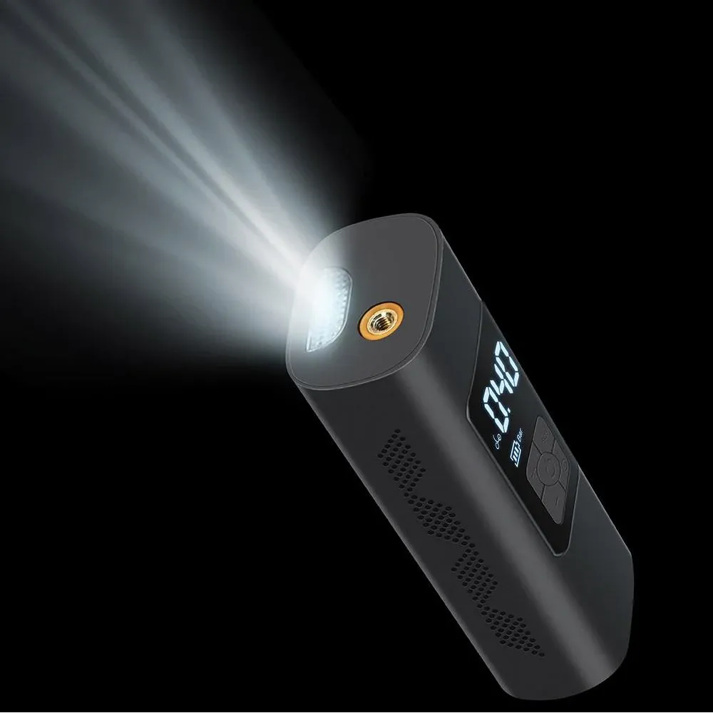 The cordless air pump is equipped with an LED flashlight for emergency use. It has 3 light modes including steady white, slow flashing red and fast flashing red to ensure maximum visibility and safety in even the darkest conditions.