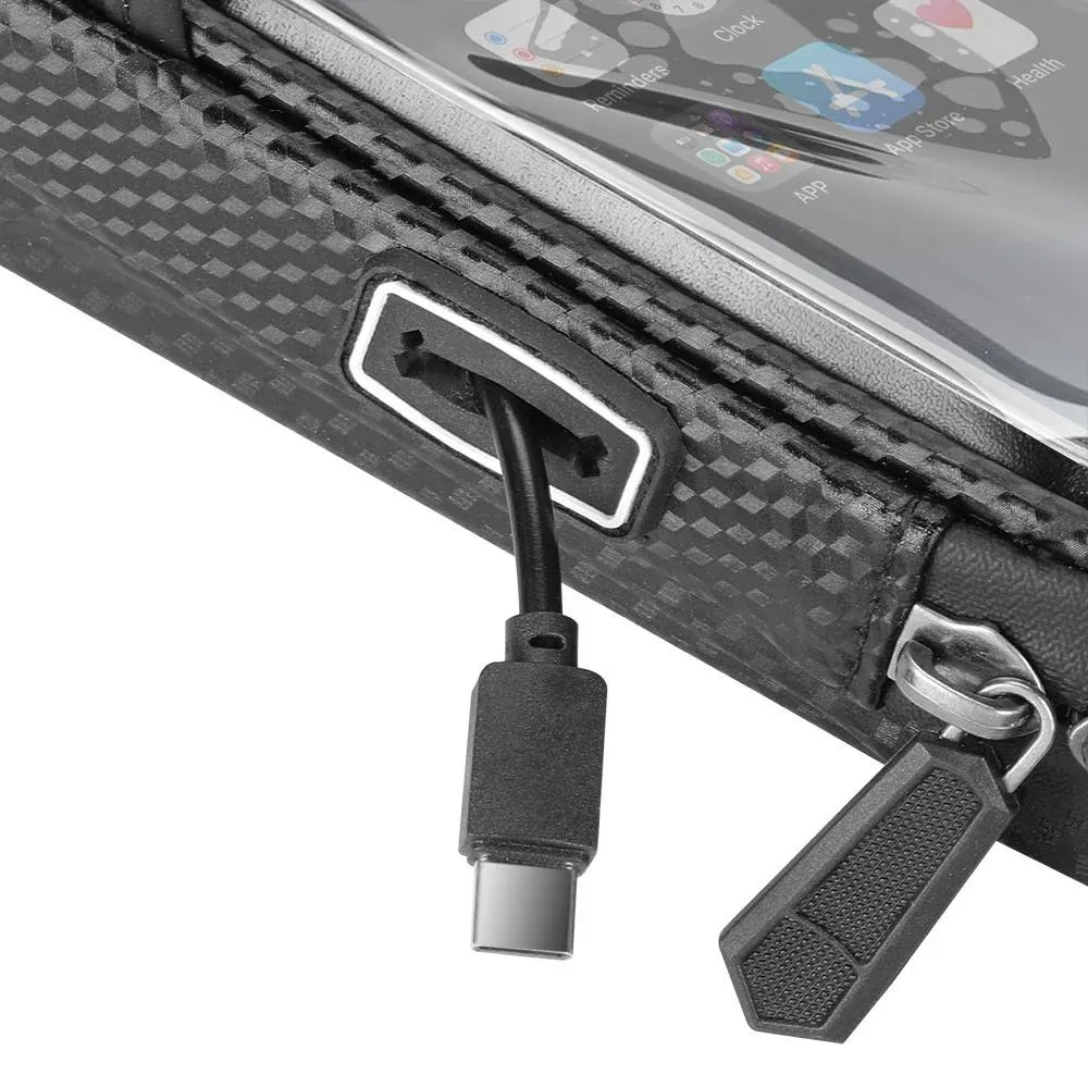 This phone bag is easy to install and 360° rotary for easy use. Moreover, it has a hidden hole to let your cable pass through it. You can charge your phone or enjoy some music over your ride.