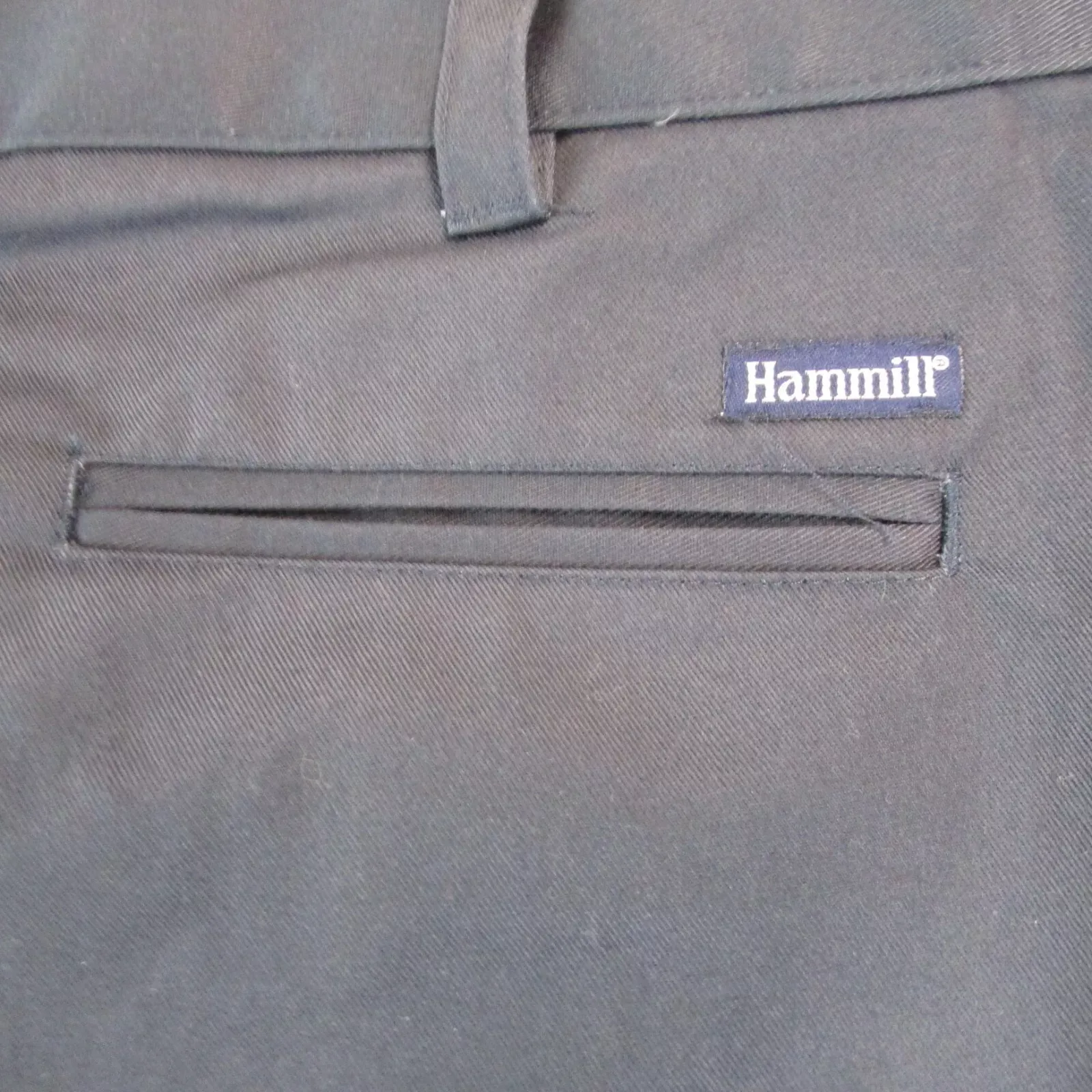 - Hammill Work Pants feature a bold and daring design, including a sturdy hook and eye closure, brass zipper, and reinforced front pockets for a reliable fit. The pants also offer two rear pockets (one buttoned) and 2-inch belt loops to accommodate 1-3/4″ belts. Crafted with a fashionable 7-3/4 ounce 65/35% poly/cotton twill fabric, these pants are both durable and easy to machine wash. Available in navy or black, they add a touch of adventure and style to any wardrobe.. Experience unparalleled comfort and style with Hammill Work Pants! Designed with a bold, daring look and sturdy construction, these pants feature reinforced front pockets and 2-inch belt loops to accommodate any 1-3/4″ belt. Made with a fashionable and durable 7-3/4 ounce 65/35% poly/cotton twill fabric, these pants are built to last and easy to care for. Choose from navy or black to add a touch of adventure to your wardrobe.