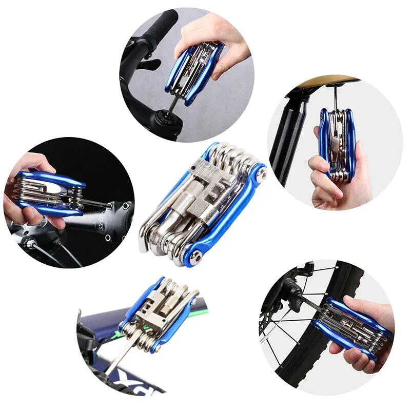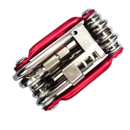 11Precision Bike Tools Including: Hex Wrench (Allen Key) 2 / 2.5 / 3 / 4 / 5 / 6 / 8 mm, Screwdriver, Slotted Screwdriver, T25 Torx and 1 Chain Cutting Tool. This multi repair tools kit can help you solve most bike problems.