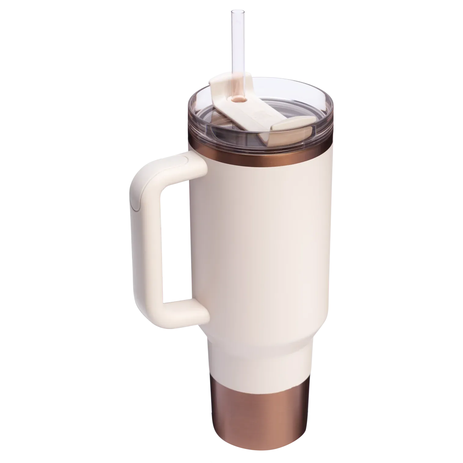 The 1.2L Quencher® H2.0 FlowState Tumbler keeps your drink ice cold for hours, thanks to double-wall vacuum insulation. The versatile FlowState™ 3-position lid has three sip settings: one for the reusable straw, one without and the option to rotate the silicone cover shut. It fits right in your car cupholder when you’re on the go.
